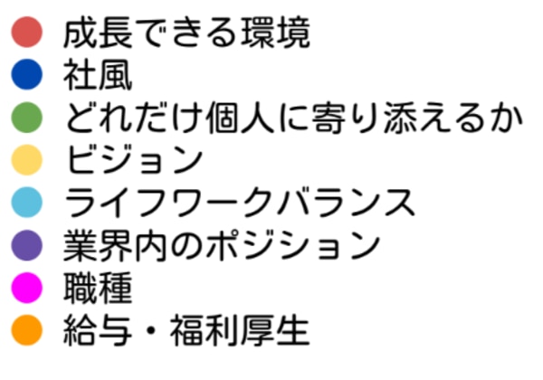 例えば、就活の軸は大きく分けても下記8つに分類できます。