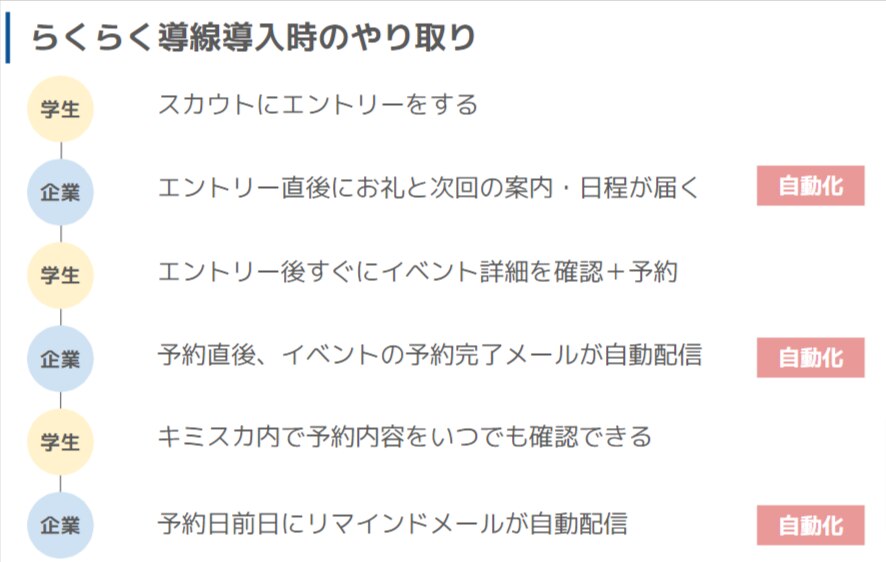 また4つのポイントを網羅できることに加え、企業も学生も効率的にやり取りができる「らくらく導線」を作っていただくことが可能です。