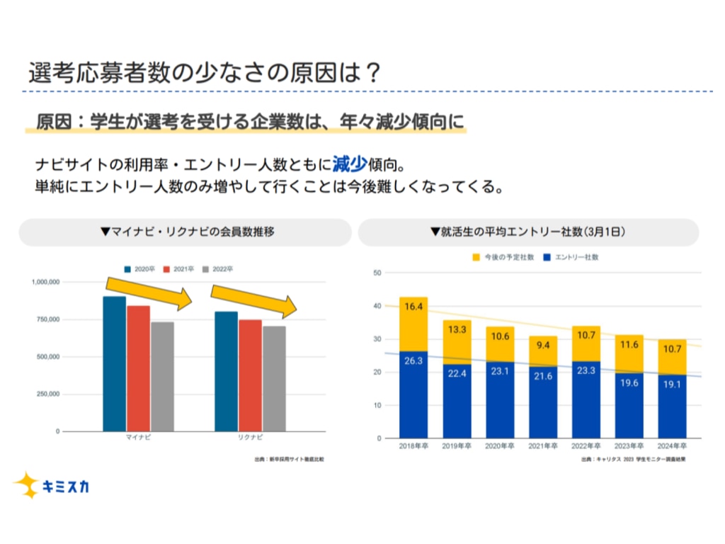 ナビ サイトの利用率であったり、エントリー の人数が共に減少傾向にあります 。